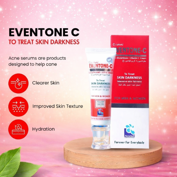 Eventone C Cream Is An Advanced Vitamin C Skincare Cream Designed To Brighten, Even Out Skin Tone, And Reduce Dark Spots. It Penetrates Deeply To Nourish Your Skin, Giving It A Radiant And Youthful Glow. Ideal For Daily Use On Face And Neck.