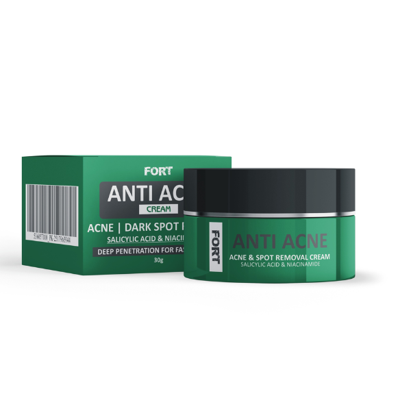 Fort Anti Acne Cream Is A Powerful Skincare Solution Designed To Target Acne, Pimples, Blackheads, And Acne Marks. Its Advanced Formula Helps Control Excess Oil, Unclog Pores, And Calm Irritated Skin—Leaving Your Face Clear, Smooth, And Refreshed With Regular Use.
