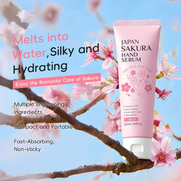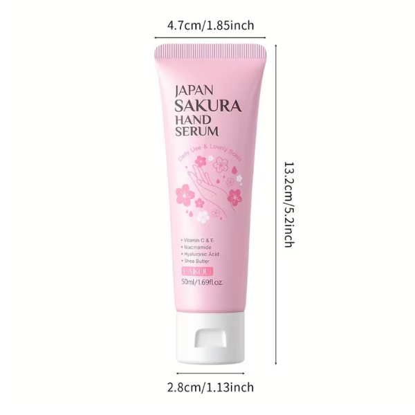Japan Sakura Hand Serum Is A Premium Skincare Solution Enriched With Natural Japanese Sakura (Cherry Blossom) Extract. It Is Specially Formulated To Deeply Nourish, Brighten, And Repair Dry, Rough, And Damaged Hands. The Lightweight, Non-greasy Serum Absorbs Quickly, Leaving Hands Soft, Smooth, And Delicately Scented.