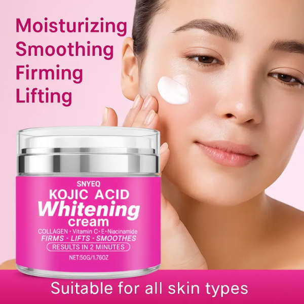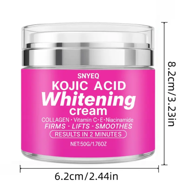 Kojic Acid Whitening Cream Is A Skin-brightening Formula Designed To Reduce Dark Spots, Acne Scars, Melasma, And Uneven Skin Tone. Enriched With Kojic Acid, Vitamin C, And Natural Extracts, It Helps Fade Hyperpigmentation And Promotes A Radiant, Youthful Glow.