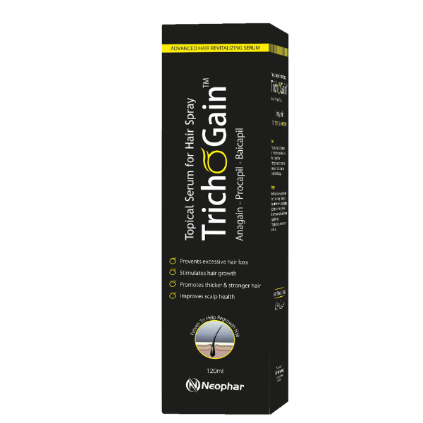 Neophar Trichogain Hair Growth Serum Is A Topical Spray Serum Designed To Support Hair Health By Reducing Hair Loss, Stimulating Hair Growth, And Improving Scalp Condition. It’s Formulated With A Blend Of Active Botanical Complexes That Target Hair Follicles And The Scalp Environment To Promote Thicker, Stronger Hair.
