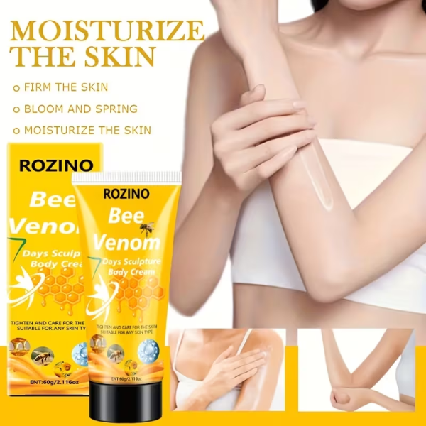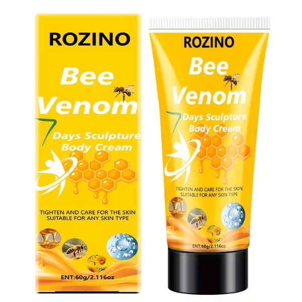 Rozino Bee Venom Sculpture Body Cream Is An Advanced Skincare Solution Formulated To Firm, Lift, And Sculpt The Body. Infused With Bee Venom, Peptides, And Nourishing Botanical Extracts, It Targets Sagging Skin, Cellulite, And Signs Of Aging For A Smoother, More Youthful Appearance.