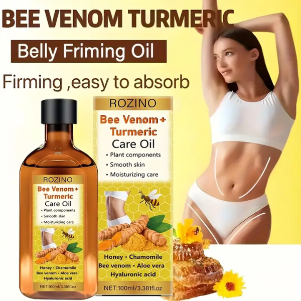 Rozino Bee Venom Turmeric Care Oil Is A Premium Skincare Oil Infused With Natural Bee Venom And Turmeric Extract. This Unique Blend Helps Rejuvenate, Repair, And Brighten The Skin While Promoting A Youthful Glow.