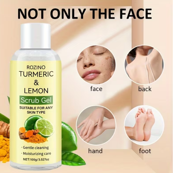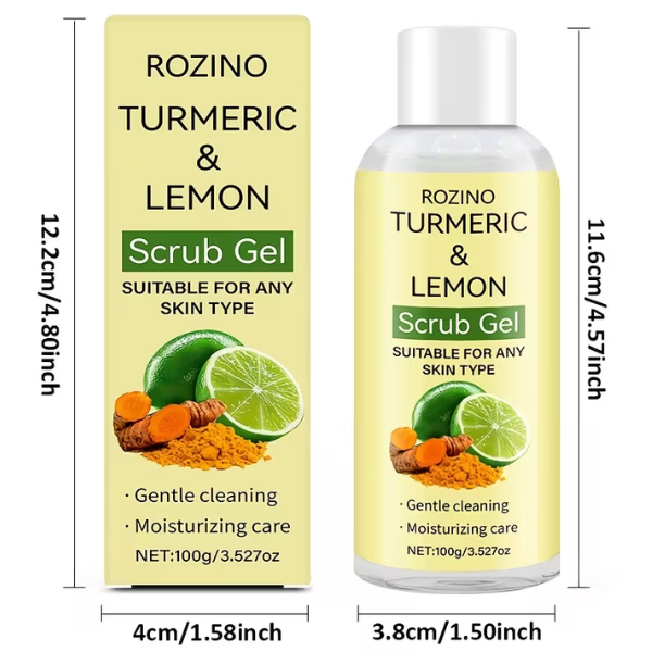 Rozino Turmeric Lemon Scrub Gel Is A Gentle Exfoliating Formula Enriched With Natural Turmeric Extract And Fresh Lemon Essence. It Helps Remove Dead Skin Cells, Deep Clean Pores, Reduce Dullness, And Reveal A Bright, Glowing Complexion. Suitable For All Skin Types, Including Oily And Acne-prone Skin.