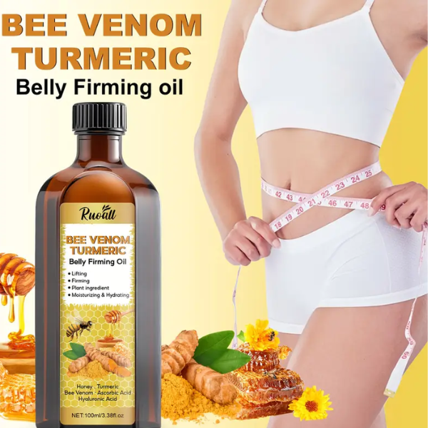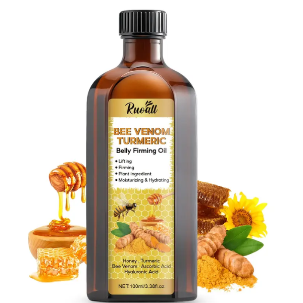 Ruoall Bee Venom Turmeric Firming Belly Oil Is A Luxurious Body Treatment Crafted To Tighten, Tone, And Nourish The Skin. Enriched With Natural Bee Venom And Turmeric Extract, It Stimulates Collagen Production, Improves Skin Elasticity, And Helps Restore A Youthful, Firm Appearance—Especially Around The Belly And Waist Area.