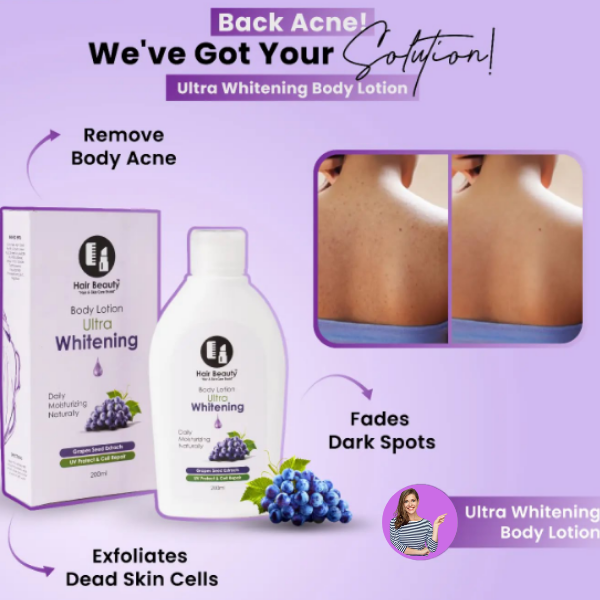 Ultra Whitening Body Lotion Is A Premium Skin-brightening Moisturizer Formulated To Deeply Nourish, Hydrate, And Visibly Lighten Dull Or Uneven Skin Tone. Its Fast-absorbing, Non-greasy Texture Leaves The Skin Smooth, Radiant, And Silky Soft. Regular Use Helps Reduce The Appearance Of Dark Spots, Pigmentation, And Sun Damage, Revealing Naturally Fairer And Glowing Skin.