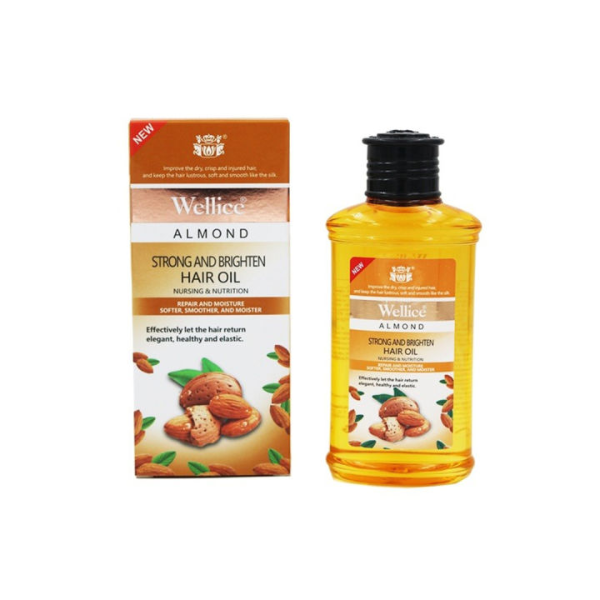 Wellice Almond Hair Oil is a premium natural oil formulated to nourish, strengthen, and revitalize hair. Enriched with pure almond oil and essential nutrients, it deeply penetrates hair strands and scalp to reduce hair fall, promote growth, and restore shine. Ideal for all hair types, including dry, damaged, or thinning hair.